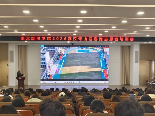 本网讯(通讯员乐熙俊胡文炜)2026年1月10日下午,2026武汉青山迎春跑志愿者培训会在大学生活动中心二号报告厅举行,武汉马拉松组委会志愿者负责人王梓桐、青山迎春跑亲子跑终点负责人张翼辉、校团委专职团干徐盛富出席会议,我校230余名志愿者参加此次培训。